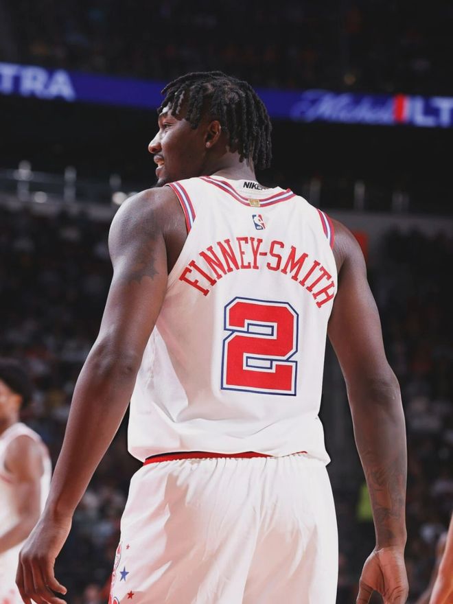數(shù)據(jù)不會騙人:芬尼-史密斯場均16.4分鐘,3.1分2.5板,三分命中率24.6%——這效率,連湖人替補范德彪都打不過。范德彪46場場均5分,芬尼-史密斯22場場均3.1分,還多出1.8分的“浪費”。